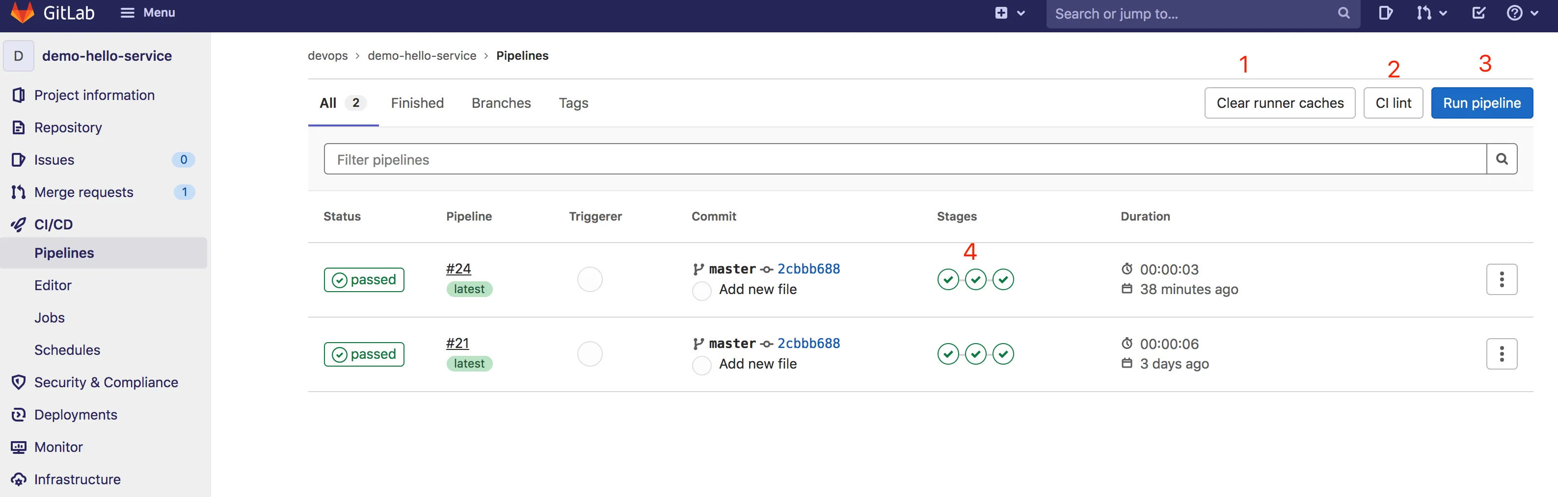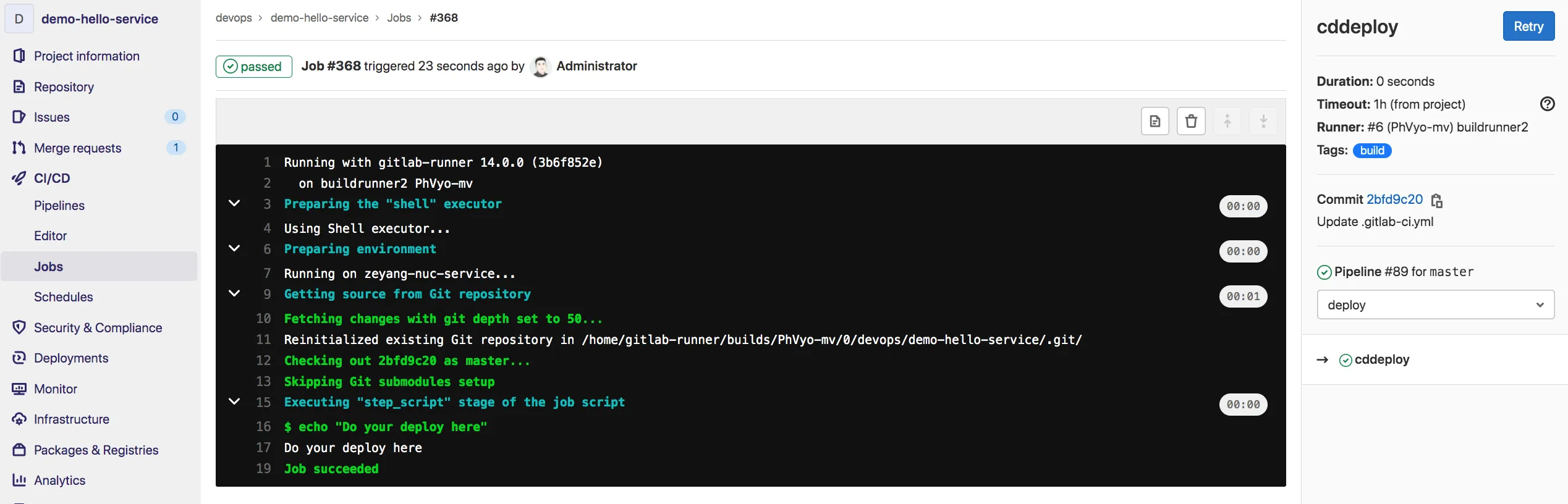 为项目中添加.gitlab-ci.yml文件,表示启动的CI/CD。默认提交动作会自动运行该.gitlab-ci.yml中定义的作业。