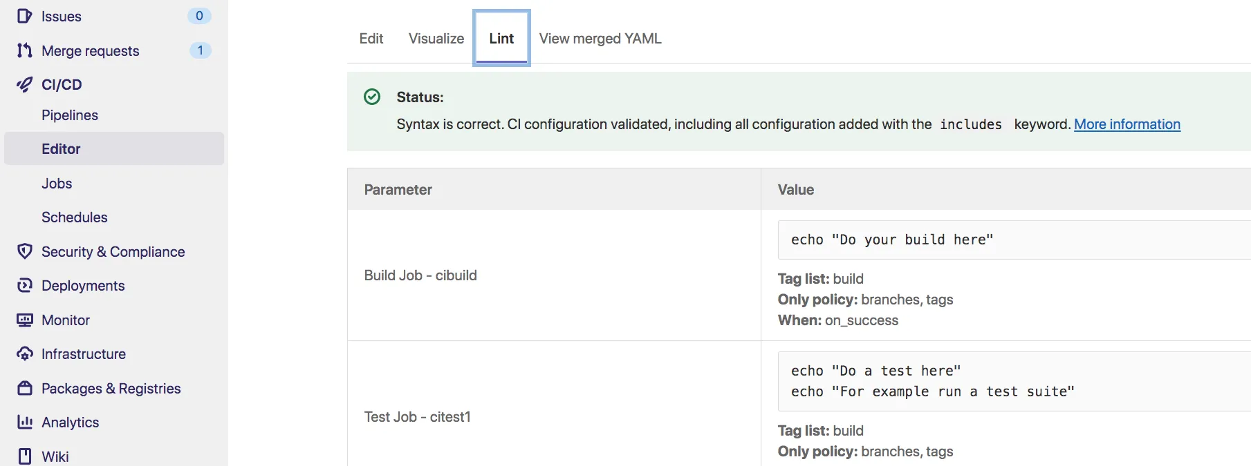 通过Lint可以检测当前CI文件是否存在语法错误;若存在语法错误可以根据提示进行修正;