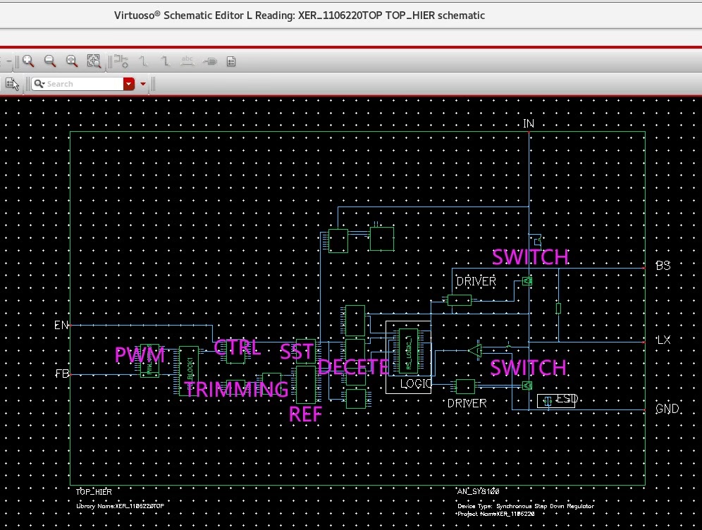 犀利姐SY8105反向电路,同步降压(Buck)DC-DC转换器。 高效的500 kHz开关频率,能够提供5.0A的电流。 SY8105在从5V到18V的宽输入电压范围内工作,并集成了主开关和同步开关与极低的RDS(ON),以最小化导电损失。 低输出电压纹波和小的外部电感和电容器尺寸实现了500 kHz的开关频率。 它采用即时PWM架构,实现高降压应用的快速瞬态响应。 学习方法是:可以直接查看里面的电路结构,还有管子的宽长比参数等。 拿到原理图之后需要自己换成自己所持有的PDK就可以跑仿真了,国内大部分公司都是这样设计芯片产品的,参考价值非常大,整个芯片里面有非常多的模块,适合研究生没有项目的同学,可以拿里面的一些模块当做项目,也适合工作的拿来参考对比设计