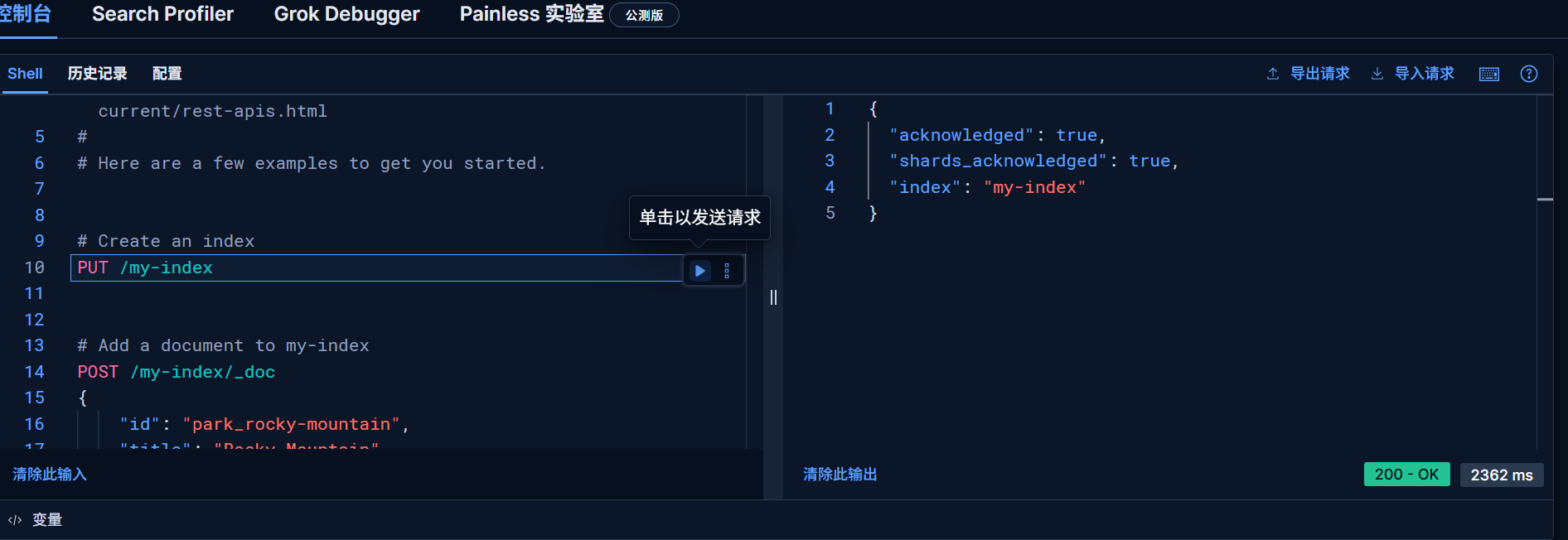 发送请求创建索引