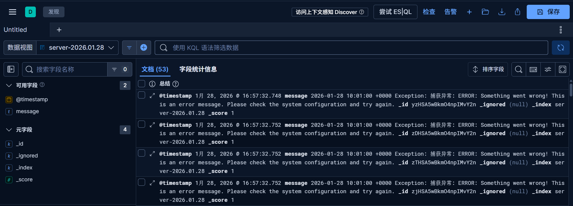 ERROR_MESSAGE="2026-01-28 10:01:00 +0000 Exception: 捕获异常: ERROR: Something went wrong! This is an error message. Please check the system configuration and try again.\n"