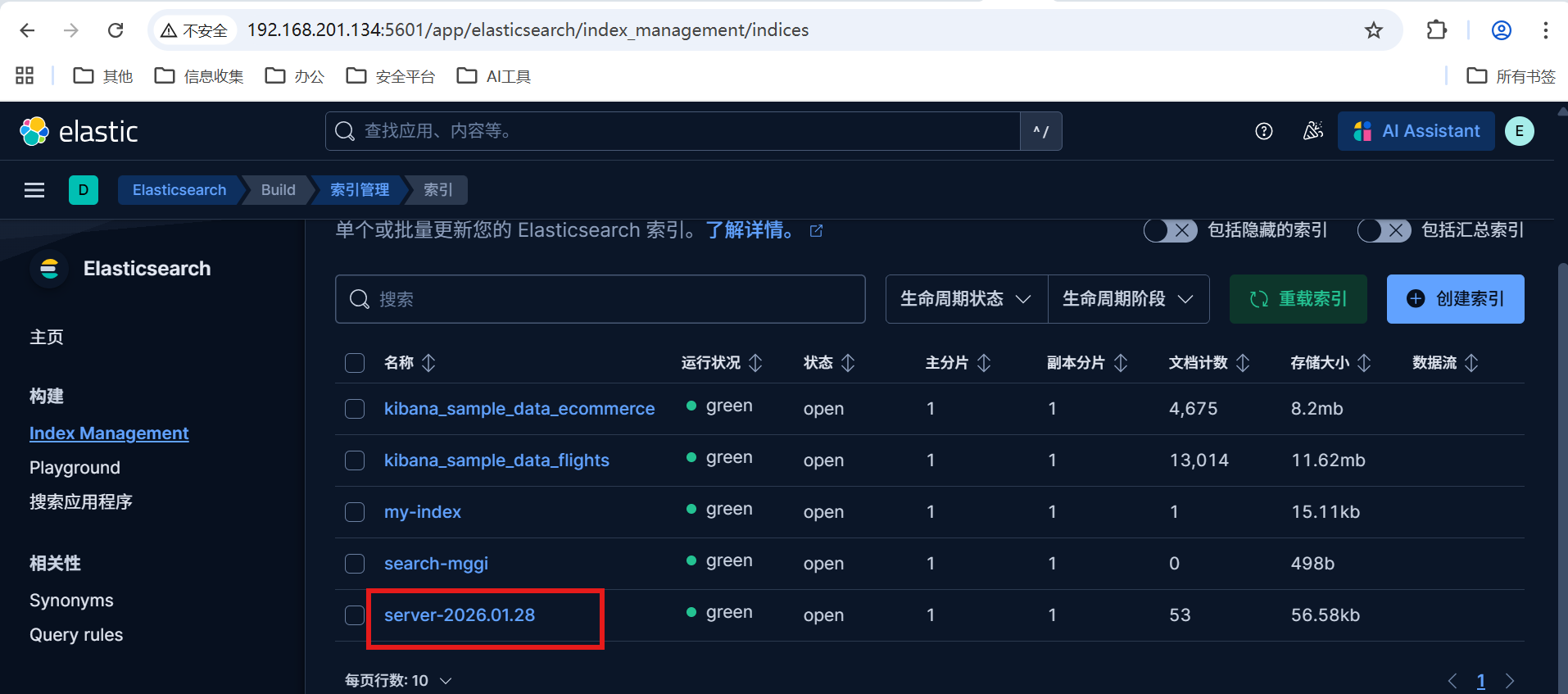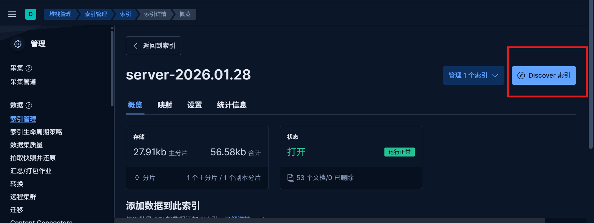 我们可以在 index management查看我们filebeat->logstash->es的数据。