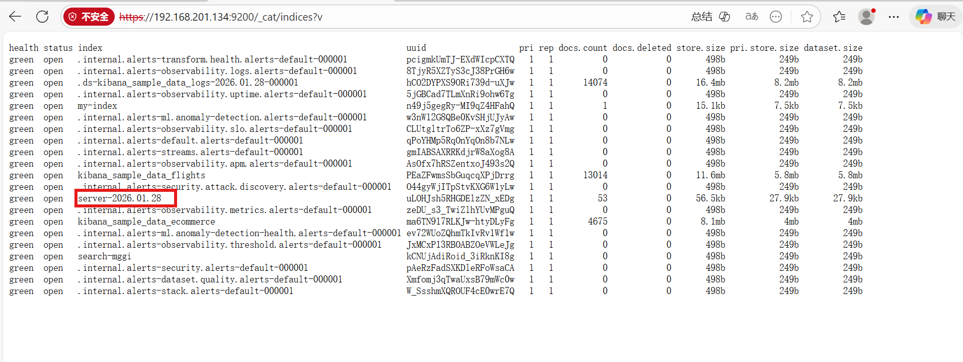 成功发送数据并创建索引