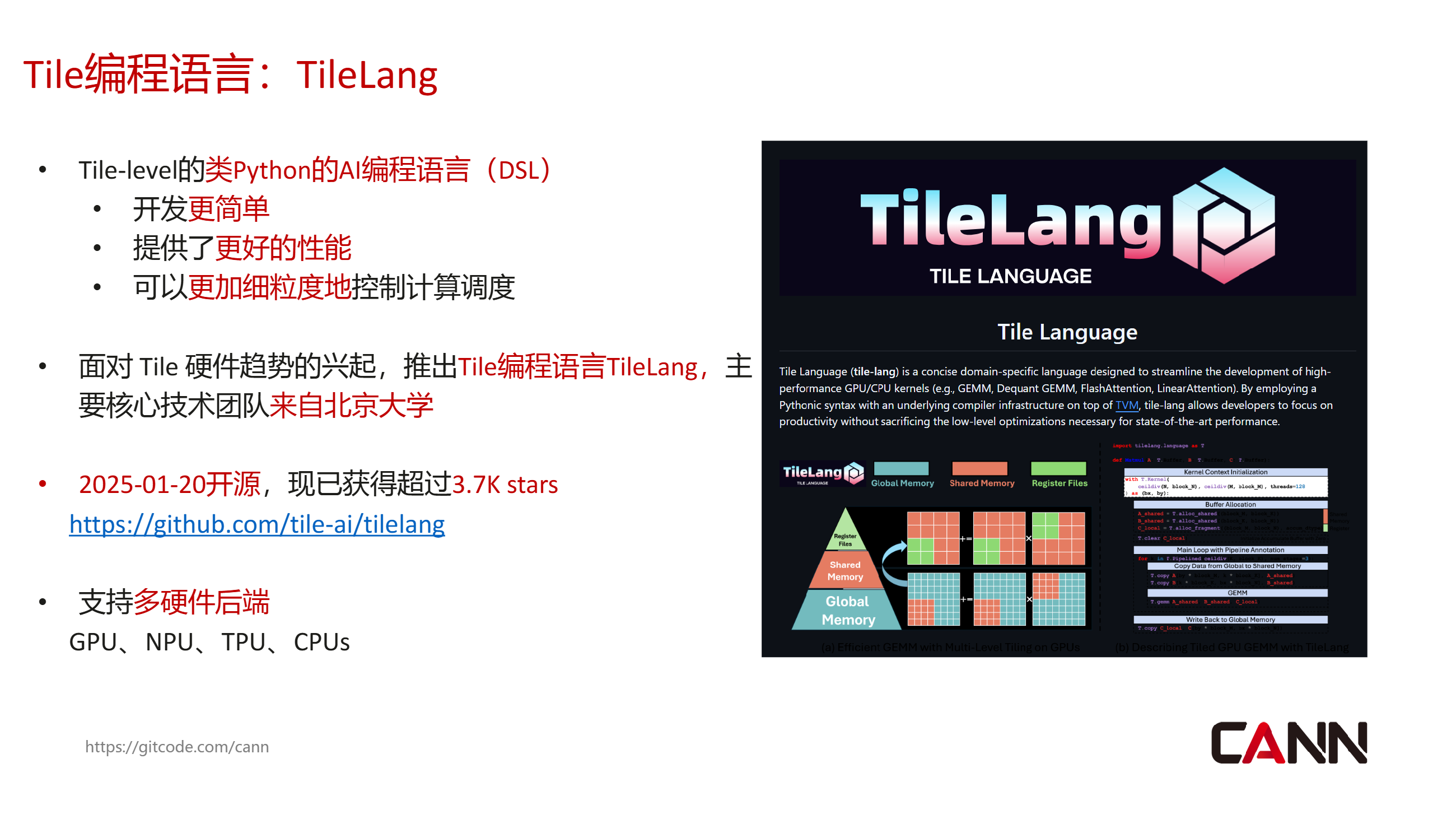 CANN开源社区tilelang链接:https://gitcode.com/cann/cann-recipes-infer/tree/master/ops/tilelang
