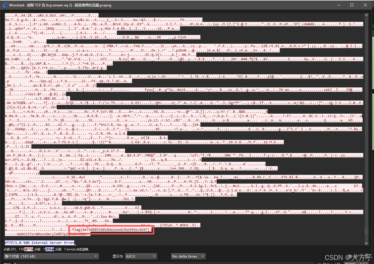 然后通过追踪TCP流,将flag复制出来