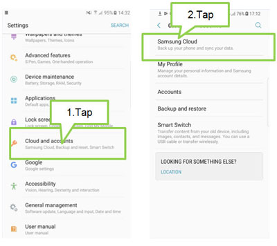 步骤1.转到"设置"选项,然后点击"云和帐户">"三星云"。