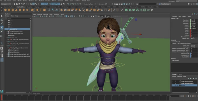 前期准备是走路循环制作的前提,核心是确保角色绑定规范且场景适配。首先,需使用已完成骨骼搭建与权重绘制的角色模型,绑定需规范,关节旋转无卡顿、模型变形自然,避免因绑定问题导致后续动画姿态失真。其次,在Maya场景中创建地面平面,将角色放置在地面上,确保角色重心与地面贴合,同时开启"网格吸附"功能,辅助角色脚部精准贴合地面,避免出现悬空或穿模问题。最后,调整时间轴参数,常规走路循环建议设置为24-30帧,确保动作节奏流畅,循环衔接自然。