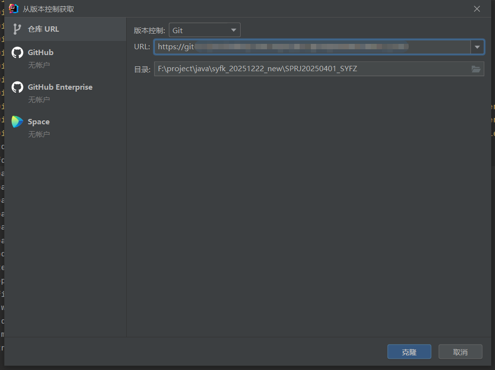 1. 文件->新建->从版本控制获取