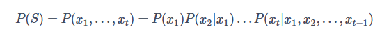 给定一个词汇集合V,对于一个由V中的词构成的序列S=x1,...,xt,xi∈V,统计语言模型赋予这个序列一个概率p(S),来衡量S符合自然语言的语法和语义规则的置信度,这个p(S)就是语言模型,也叫统计语言模型(Statistical Language Model)。