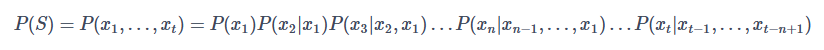 从公式里我们看出来,随着句子长度的增加,条件概率P(x1)P(x2|x1)...P(xt|x1,x2,...,xt−1)的计算会越来越困难。同时,如果语料库不够大,或者词串比较长的话,大部分的词的组合将不会出现,最终会导致数据异常稀疏。