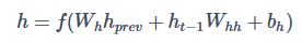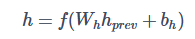 其中,h 是隐藏层的输出,hprev 是上一层(通常是输入层)的输出,Wh 是隐藏层的权值矩阵,bh 是隐藏层的偏置向量,f(⋅) 是激活函数。