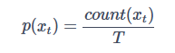 一般来说,N元模型(ngram)就是假设当前词的出现概率只与它前面的N-1个词有关。而这些概率参数都是可以通过大规模语料库来计算的。比如最简单的一元模型,我们假设语料库的总词数为T,则有: