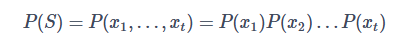 如果假设一个词的出现与它周围的词是独立的,这样的模型就被称为一元语言模型(unigram),用公式表示如下:
