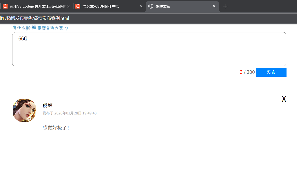3.获取元素有输入框,输入时随字数变化的0,发布按钮,还有发布的位置