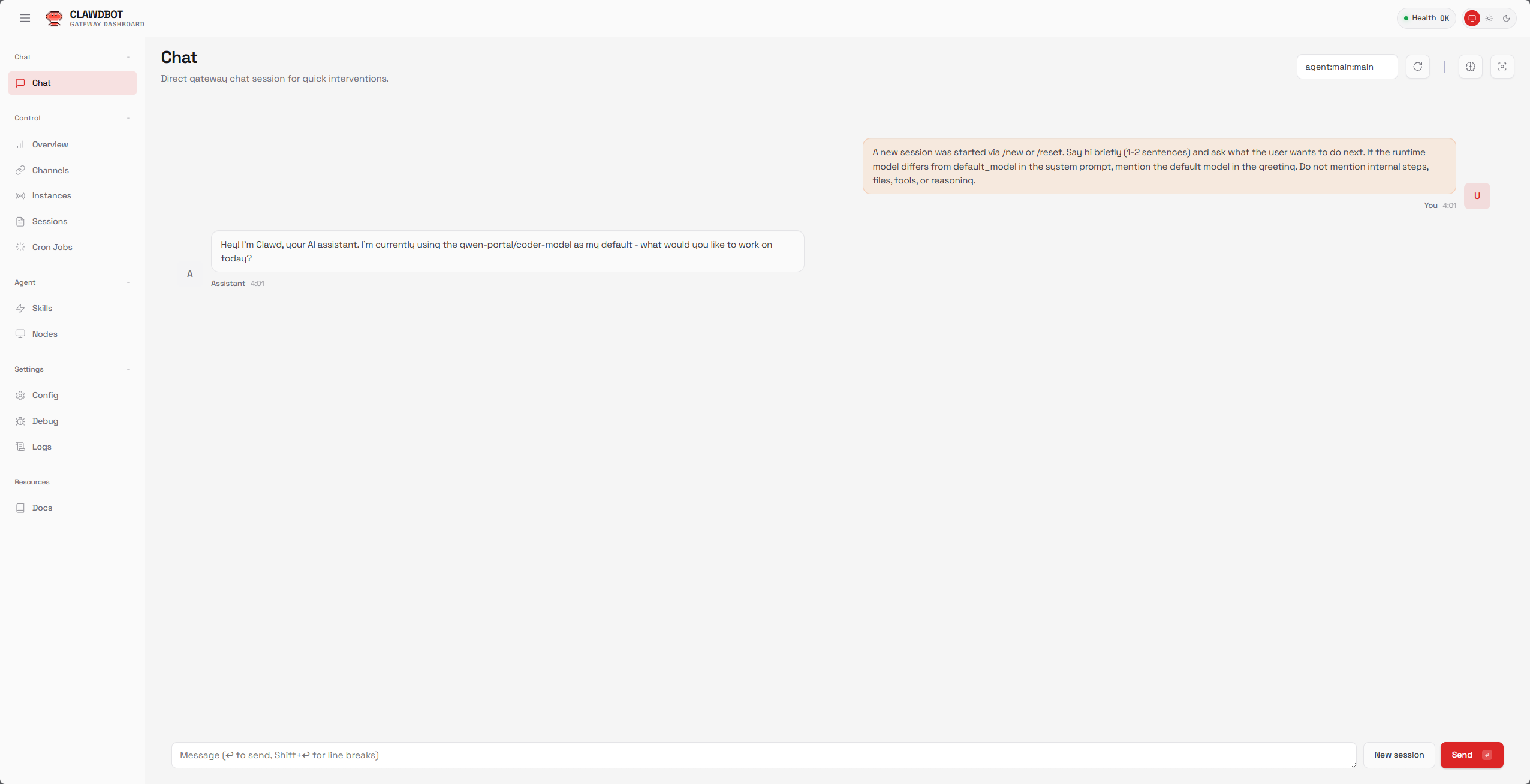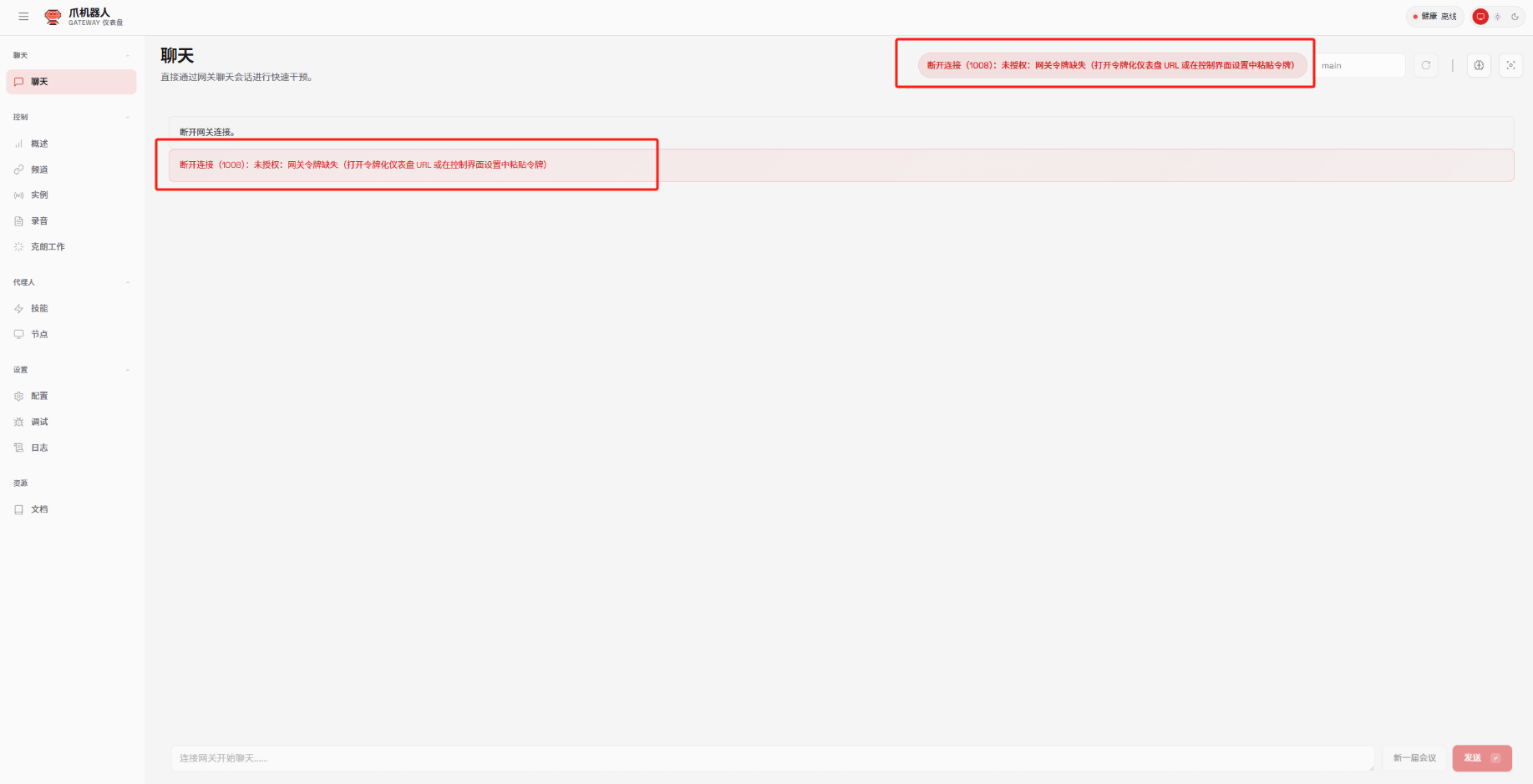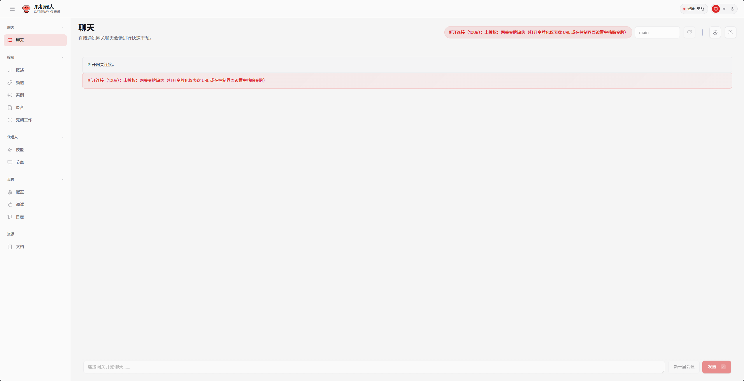 回到浏览器,点击右上角红色状态,把 Token 贴进去。一旦变绿,恭喜你,你的助理正式上线了!