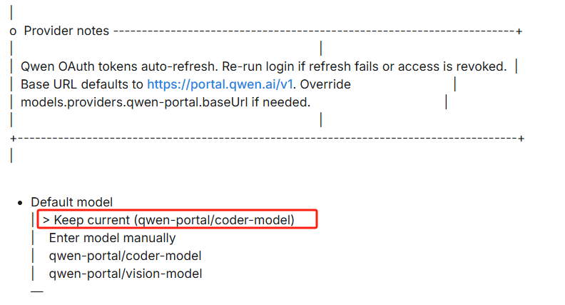 Qwen。- 注意: 此时会跳出网页让你授权,登录或者注册Qwen的账号既可。这步是为了先让机器人有个"临时大脑"跑起来。