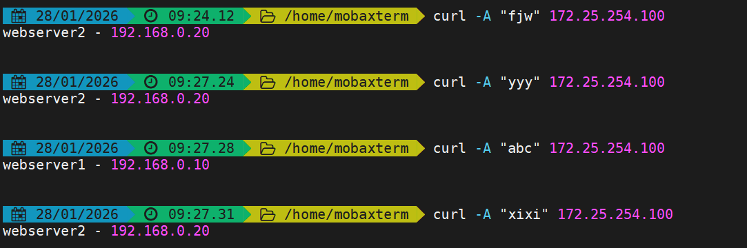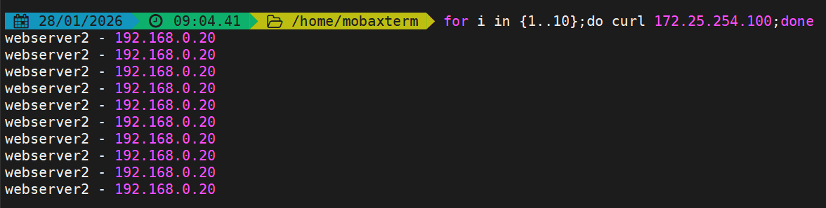 [Administrator.DESKTOP-VJ307M3] ➤ for i in {1..10}; do curl 172.25.254.100; done