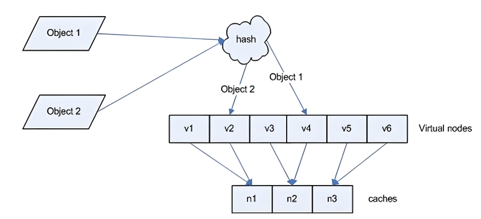 从 70 的位置顺时针找,第一个虚拟节点是 80 (s2) → 请求分发到 s2。