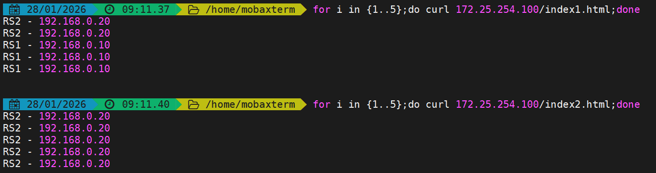 [root@webserver2 ~]# echo RS2 - 192.168.0.20 > /var/www/html/index2.html