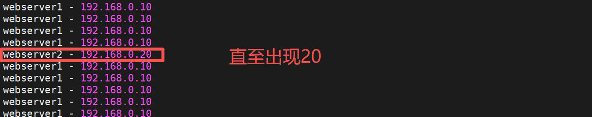 server hehe 192.168.0.10:80 maxconn 1 check inter 3s fall 3 rise 5 weight 1 #设置最大连接数为1来观察实验