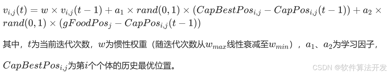 速度更新:引入惯性权重w ,结合个体最优位置与全局最优位置更新速度,公式如下:
