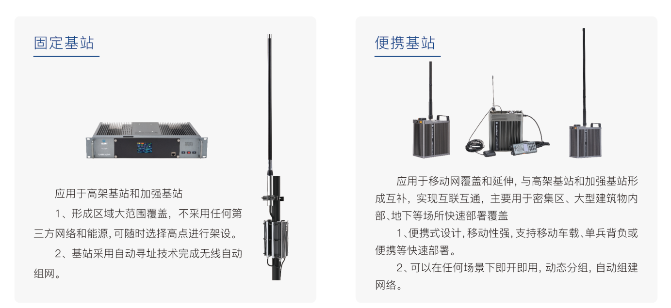 终端类型:固定基站、便携基站、车载电台、手持终端