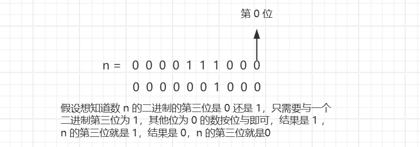 - 第二种是将 n 右移 x 位,然后和 1 按位与。(通常使用第二种方式)