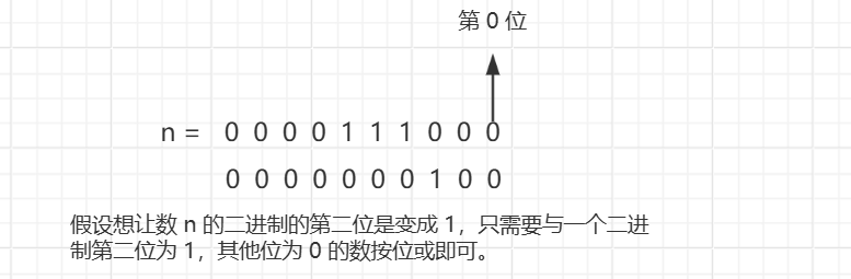与 n 按位或的这个数字只需要将 1 左移 x 位即可得到。( 即 n = n | (1 << x ) )