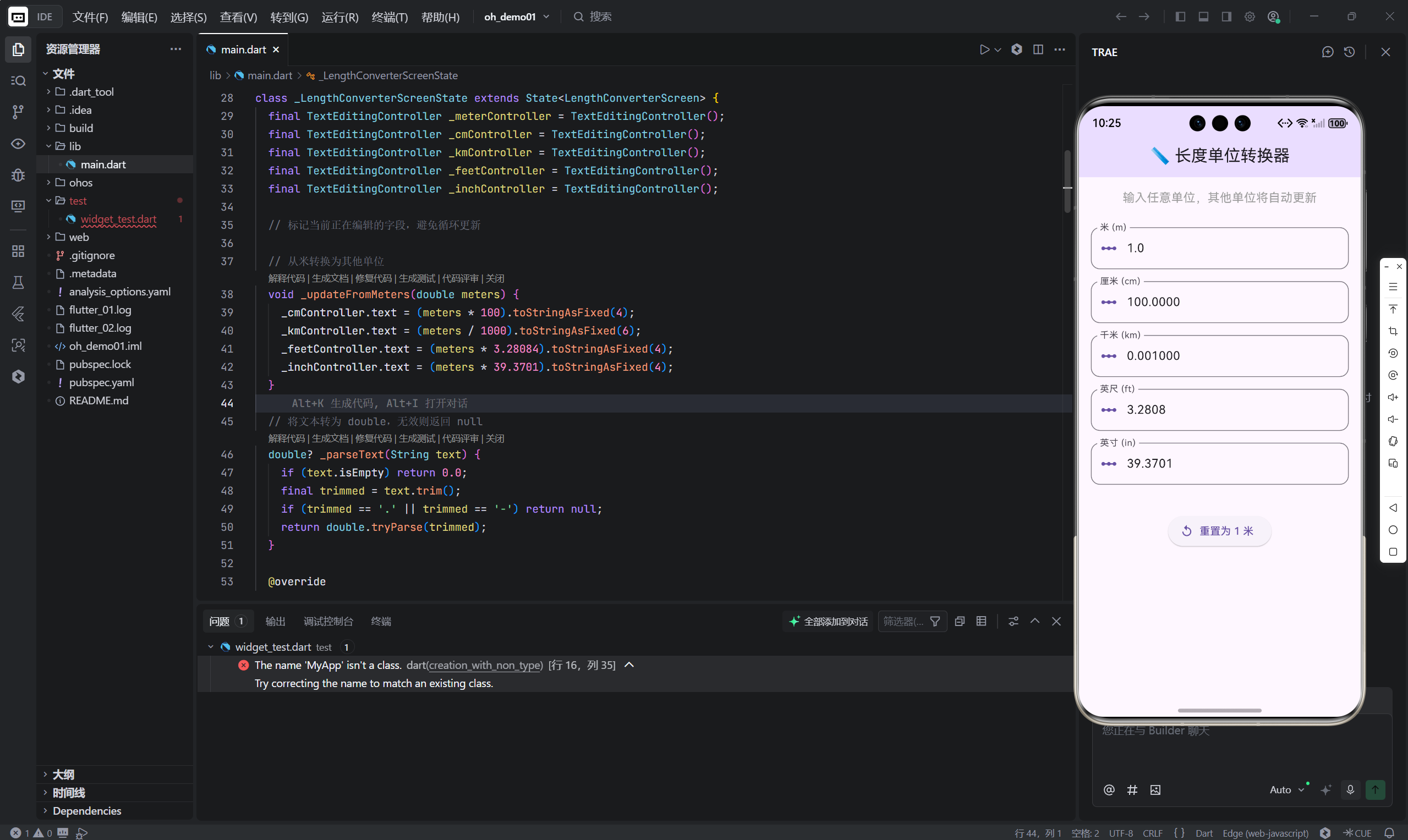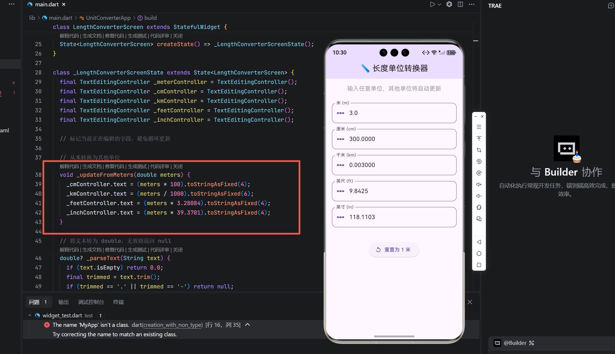 这个长度转换器仅有约 140 行代码,却完整体现了 专业 Flutter 开发的核心原则: