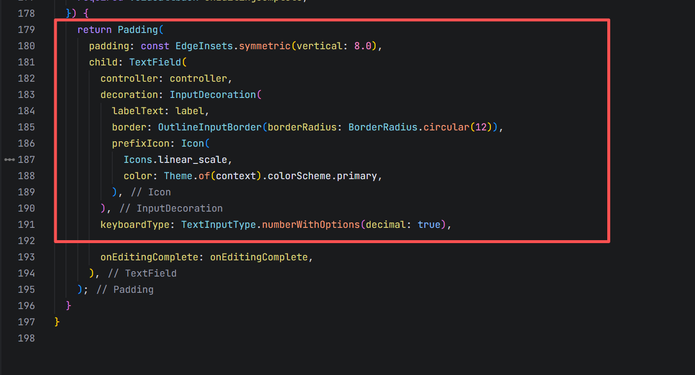prefixIcon: Icon(Icons.linear_scale, ...),