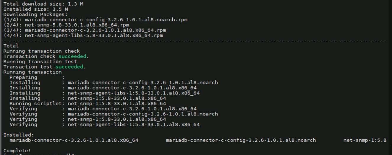 阿里云os不同于Linux 系统,安装snmp依赖包不一样.