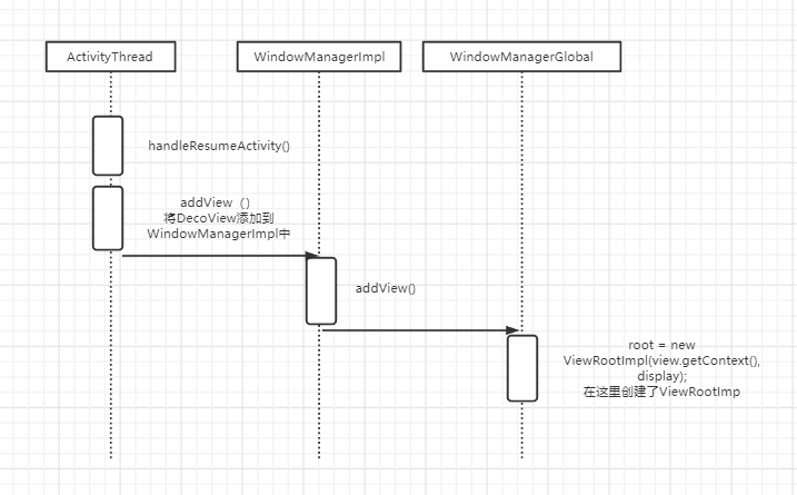 流程图大致介绍了ViewRootImpl是如何创建出来的,总结一下:在ActivityThread的handleResumeActivity()流程中,通过