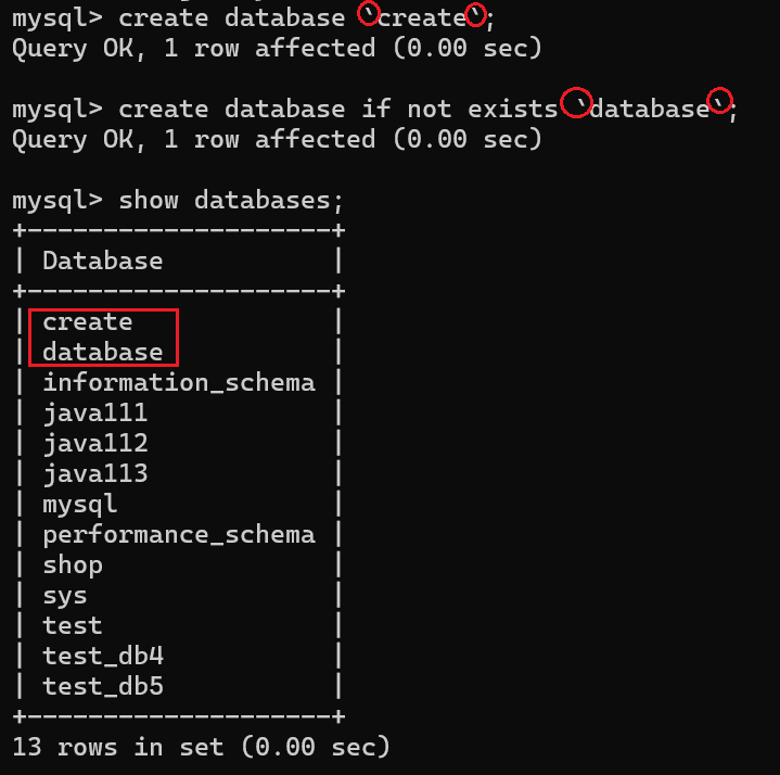 我们知道,create 、database 为MYSQL中的关键字,那么我们是否可以创建一个名字为 "create"的数据库?