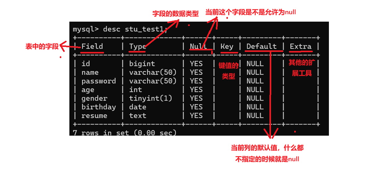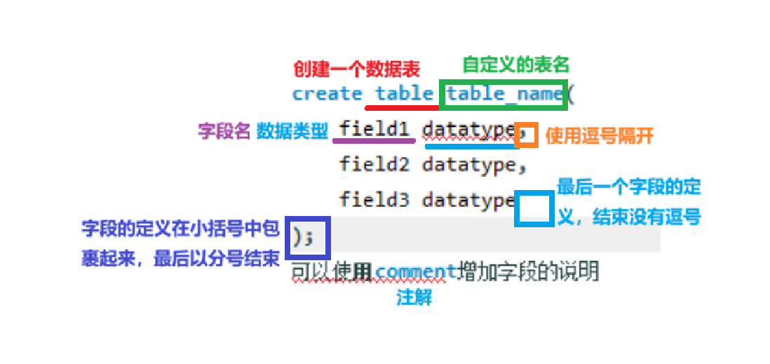 comment,表示对当前字段的注解,只是描述性的内容,对表结构没有影响