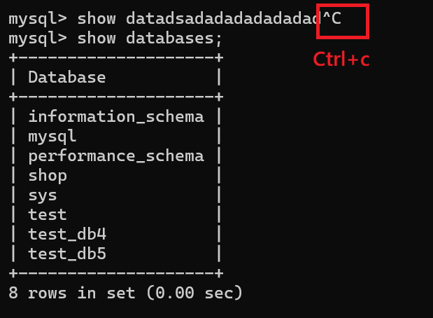 如果中途写错了,我们可以通过Ctrl+c,重新开始一行