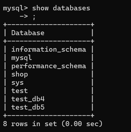 注意,当我们忘记写";"的时候,按Enter 后就会另起一行,继续去写未完成的SQL,直到遇见";"为止