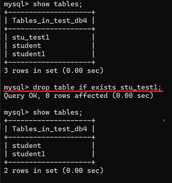 DROP [TEMPORARY] TABLE [IF EXISTS] tbl_name [, tbl_name] ...