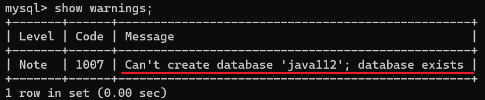 我们可以通过**show warnings;**命令来查看这个警告