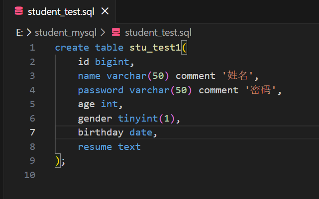 这个是我在可视化编辑工具中把创建表的SQL编写好了