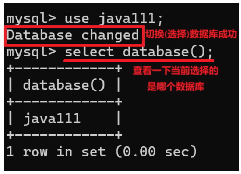 那么我们就通过**use java111;**命令,来使用java111这个数据库