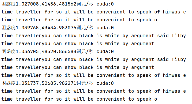 print(f'困惑度{ppl:1f},{speed:1f}词元/秒 {str(device)}')