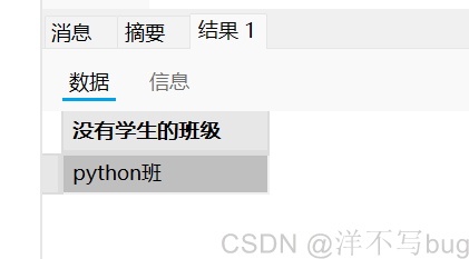 再比如查询没有学生的班,前面创建了一个python班,里面没有放同学