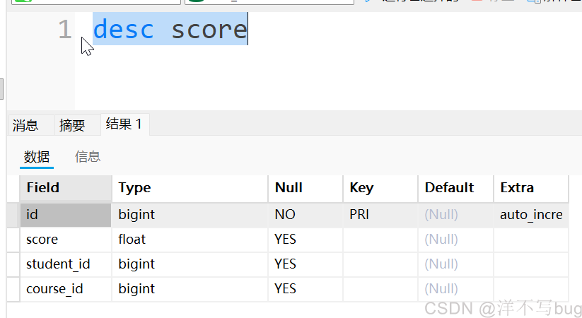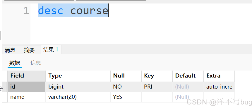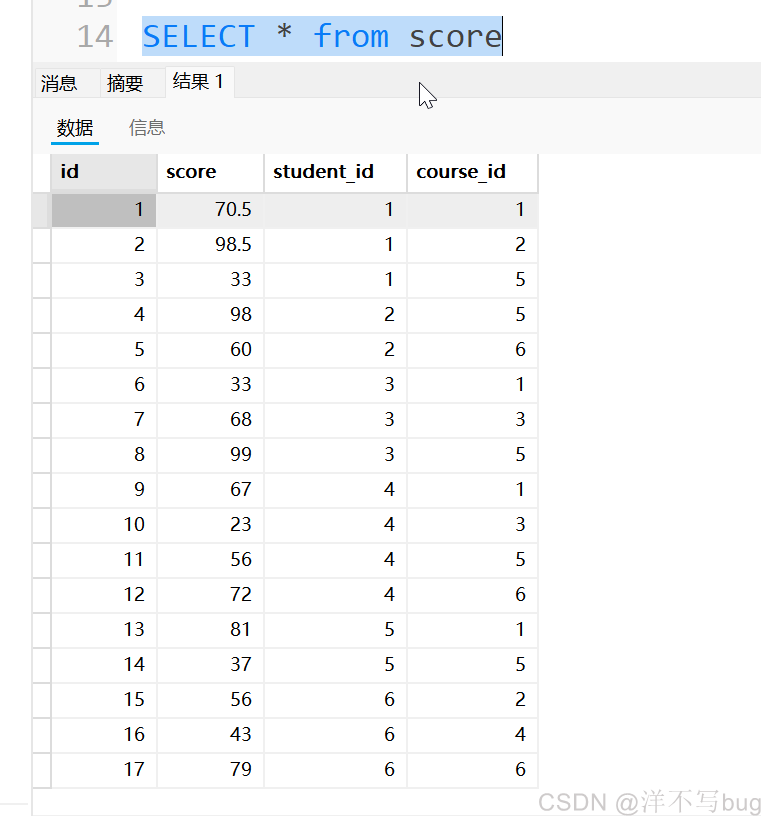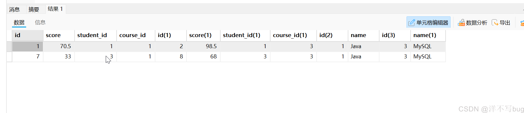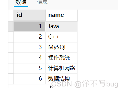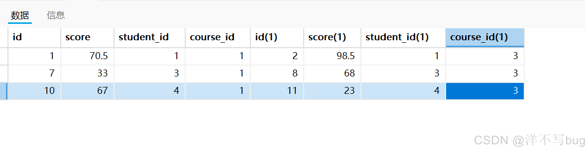 接着查询下course表,Java的Java的id是1,MySQL的id是3