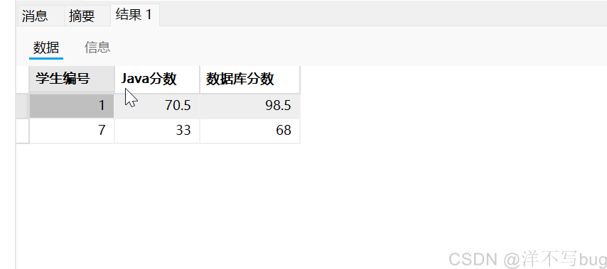 精简查询 :查询学生名字和成绩,并且用别名来进行简化如下:
