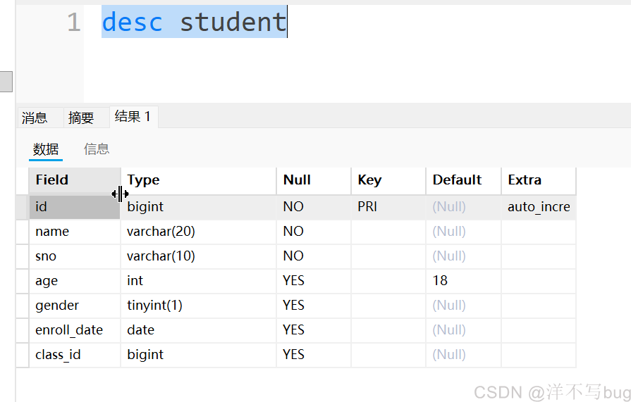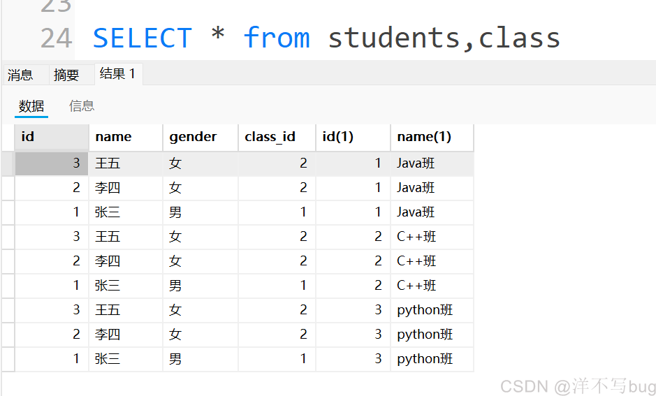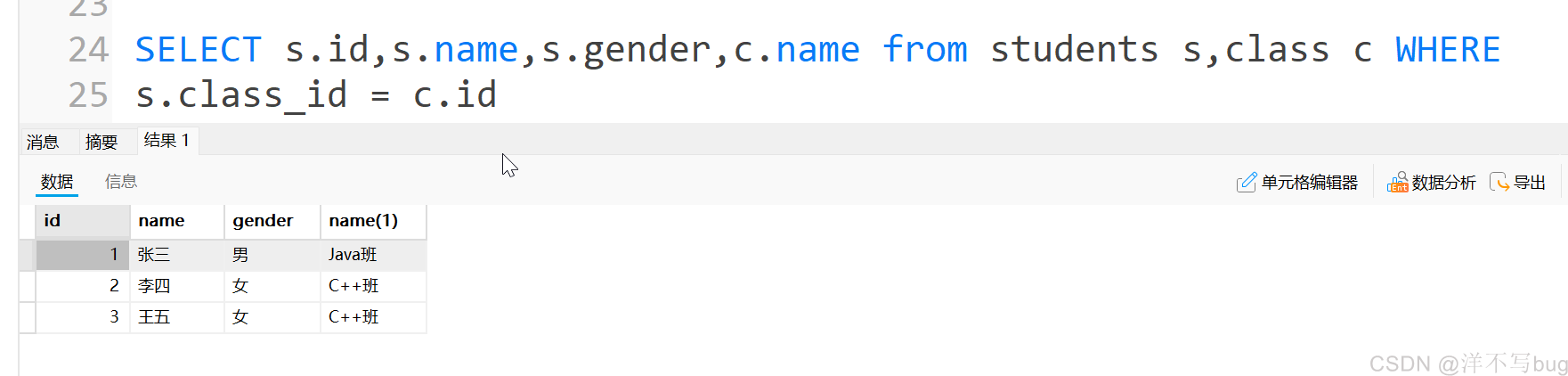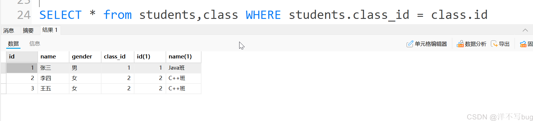 最终想要的表是这样一个表,里面是没有班级id的(如下图),这就需要指定列进行查询,但是指定列的话每次都写表的全名就太麻烦了😅