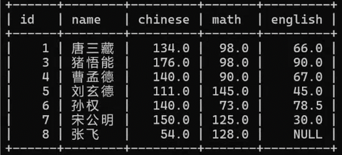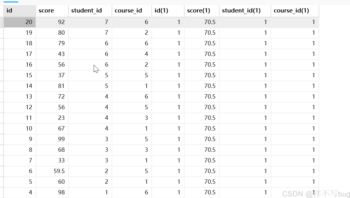 这里进行左连接查询后,就能得到一个表,score是右表,里面的信息匹配不上,就用Null填充