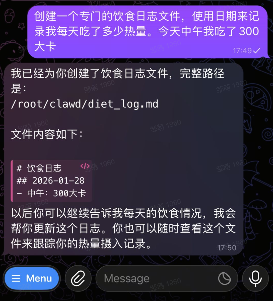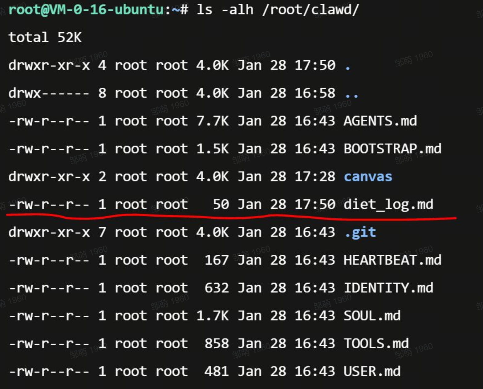 然后打开云服务器对应位置,真的有创建这个饮食日志!给我亿点震撼。。。不夸张的说,这个clawdbot真个开启了一个新时代。。
