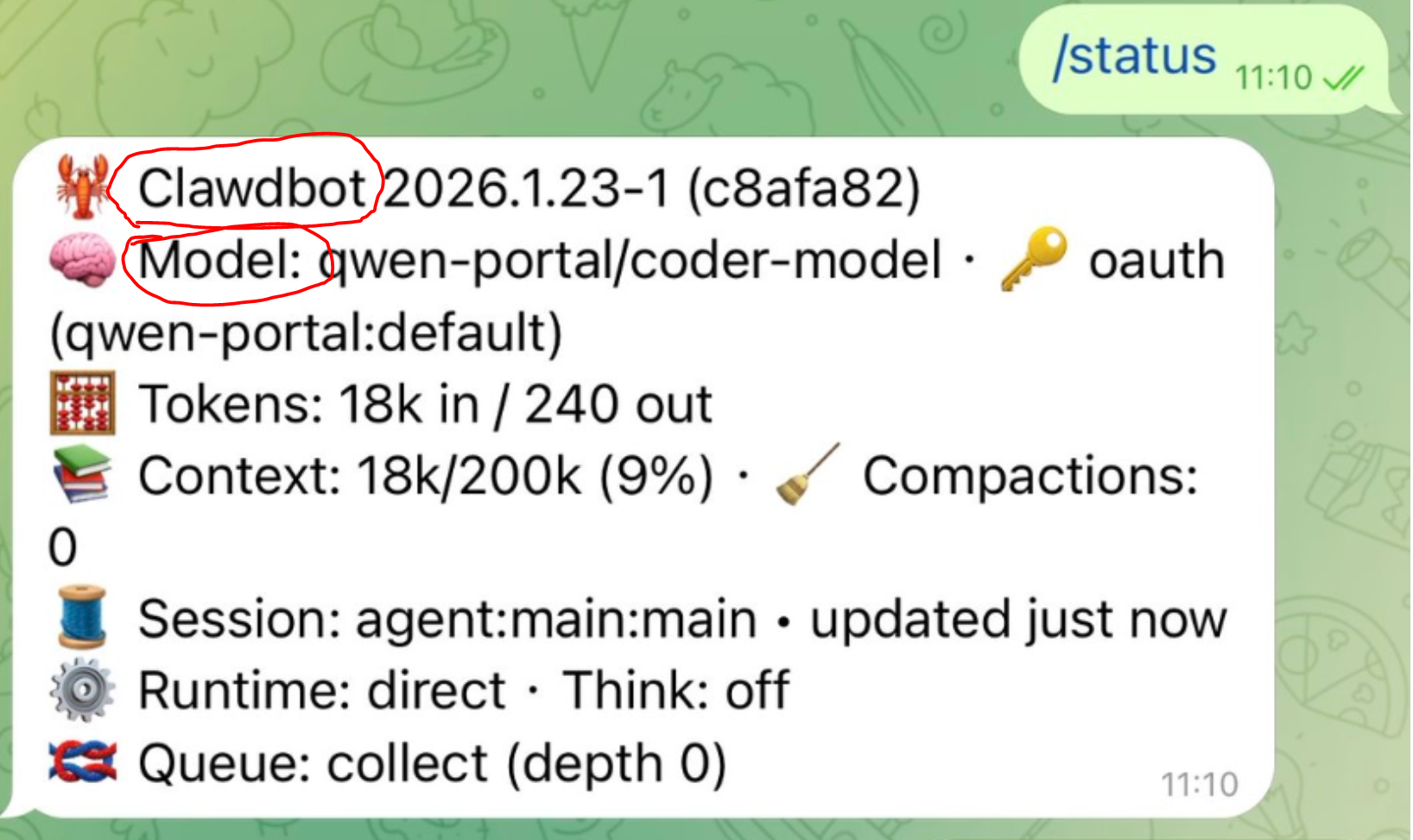 如果像上图这样,显示出clawdbot,model也对得上,恭喜你!开始体验clawdbot吧~!