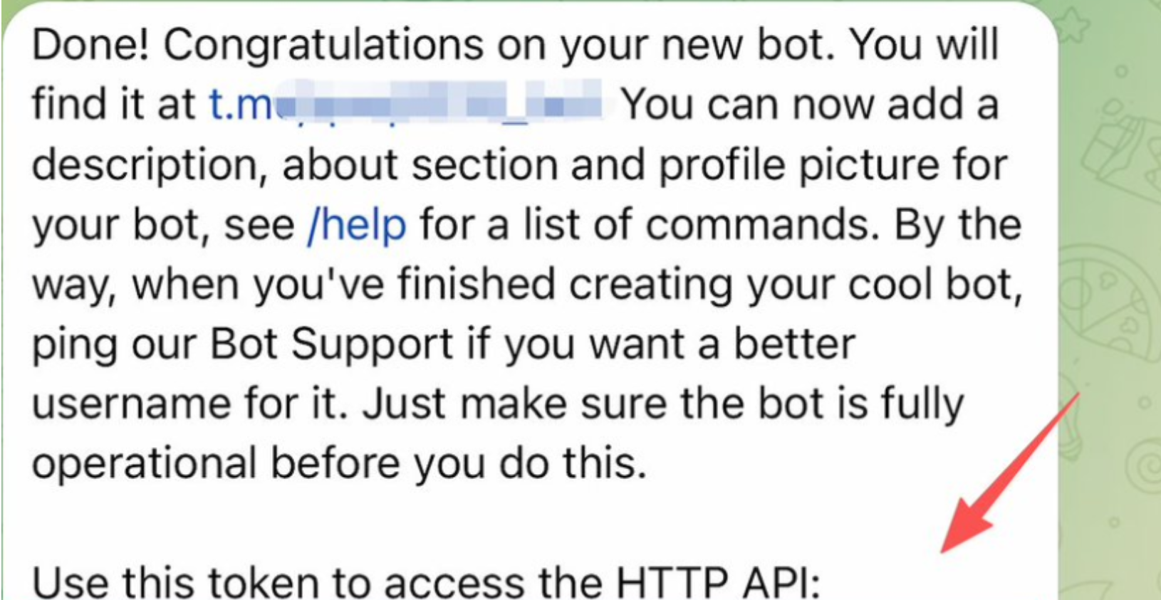 2,根据它的提示,给新创建的机器人命名,假设命名为haha_bot。创建成功后会有类似提示