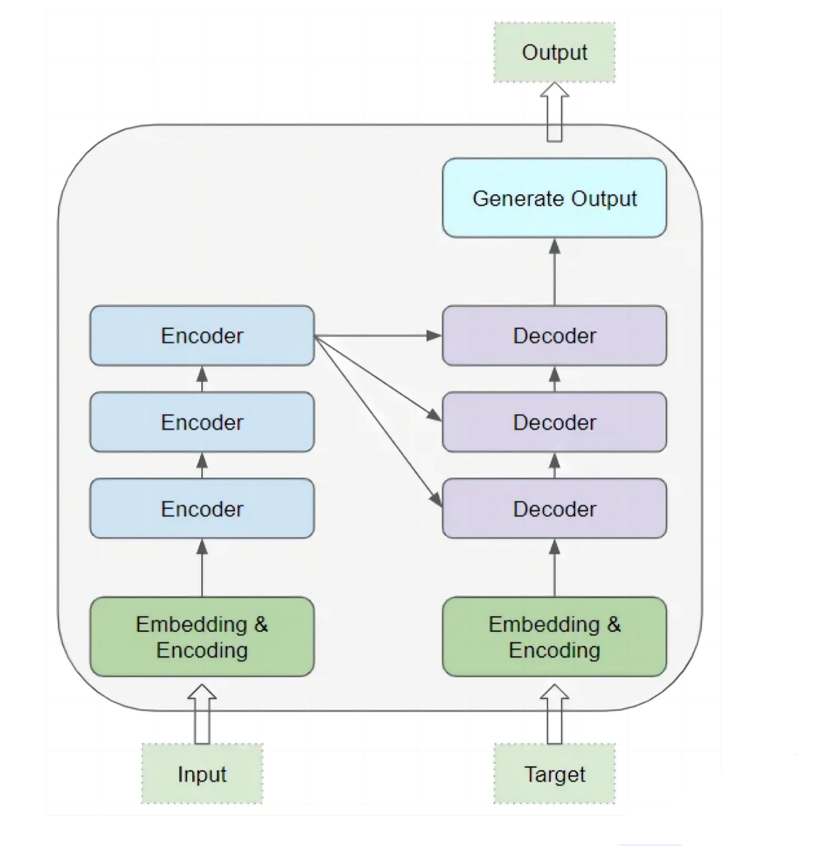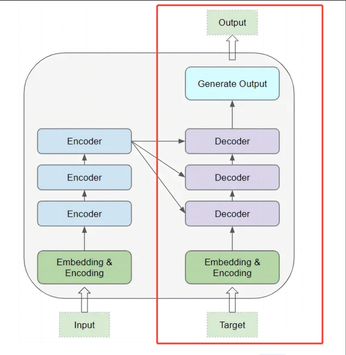 - Target :是Output错位后的序列,即解码器的输出会作为下一个时间步的输入。